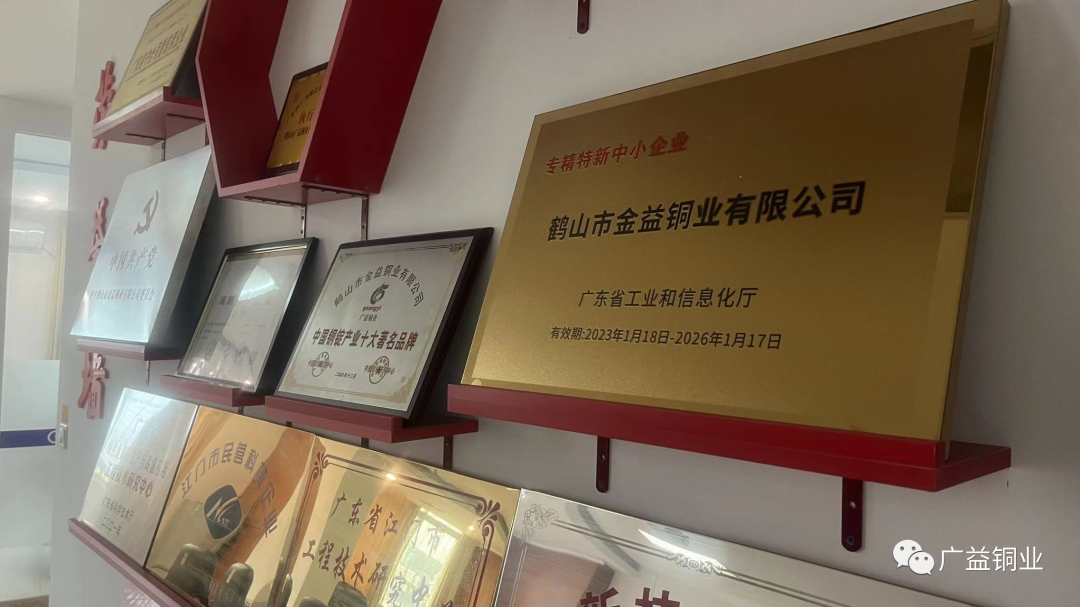 近日,廣東省工業(yè)和信息化廳公布了2022年度廣東省“專精特新”中小企業(yè)名單,鶴山市金益銅業(yè)有限公司榜上有名,榮獲廣東省“專精特新”中小企業(yè)稱號。此次被認(rèn)定為廣東省“專精特新”中小企業(yè),是對鶴山市金益銅業(yè)有限公司技術(shù)創(chuàng)新、產(chǎn)品服務(wù)、經(jīng)營發(fā)展及綜合實力等方面的認(rèn)可和肯定。